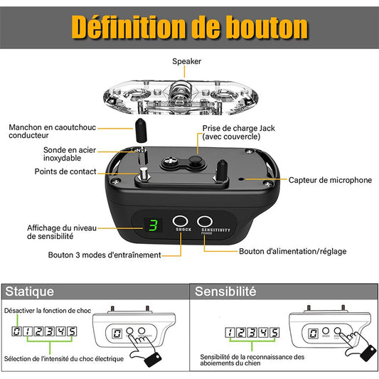 Collier Anti Aboiement Chien Automatique,Collier Choc-GNABT008
