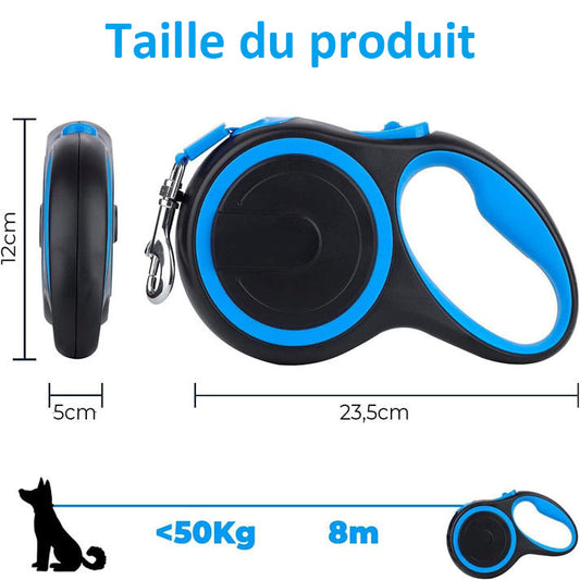 Laisse Chien, Enrouleur, Extensible, Rétractable, Laisse Flexible de Dressage et de Promenade, pour Petits, Moyens et Grands Chiens,5 et 8 Mètres