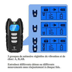 Memorizing settings 3 memory buttons for vibration and static shock: A, B, AB. Train different dogs or different movements without setting the remote control. |