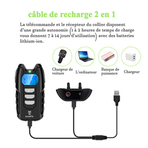 This collar is perfect for those who have two dogs. You can control the collars separately or together.